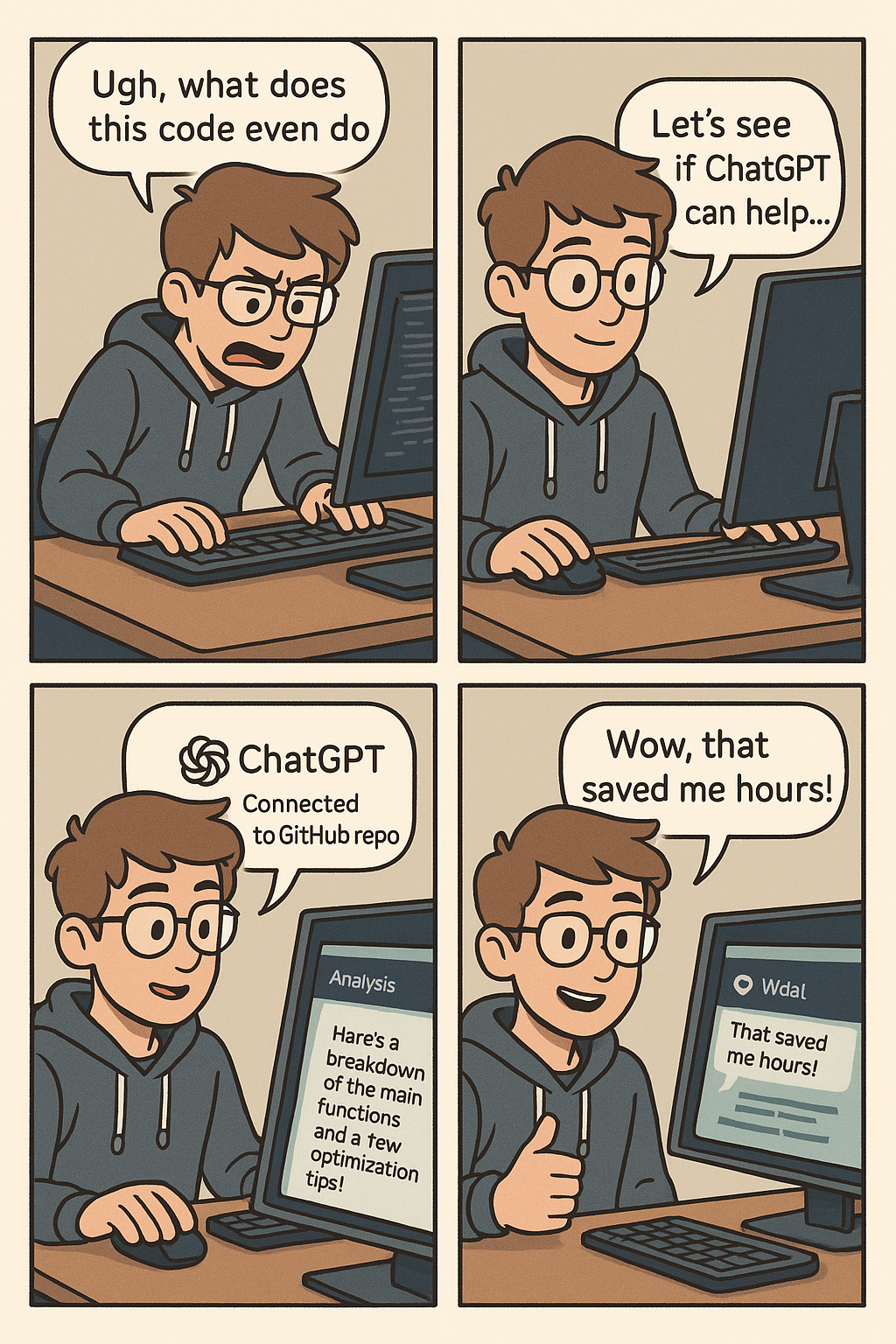 ChatGPT의 Deep Research 기능과 GitHub 연동 덕분에 이제 개발자들은 훨씬 더 빠르게 코드 이해와 리뷰를 할 수 있게 됐어요. 수동으로 설명을 달거나 코드 리뷰에 시간을 많이 들이던 시절은 점점 끝나가고 있는 느낌이에요.