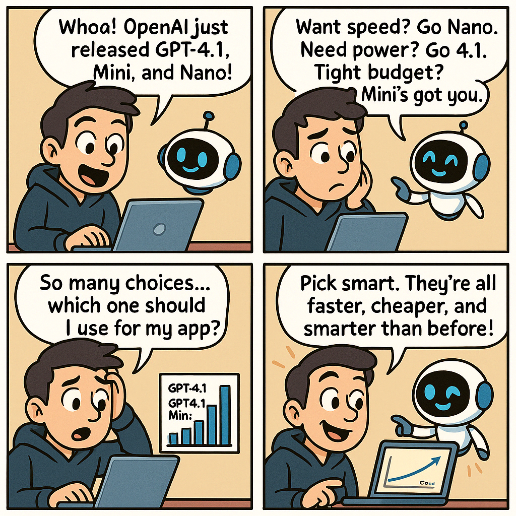 이번 GPT-4.1 시리즈는 어떤 작업이든 예산과 목적에 맞는 모델을 고를 수 있게 구성돼 있어요. 개발자나 스타트업, 대기업 모두에게 더 많은 유연성과 효율성을 제공하죠. 코딩, 이미지 분석, 실시간 응답 등 다양한 요구에 맞는 옵션을 찾고 계신다면, 이번 OpenAI의 신모델을 꼭 한번 고려해보세요!