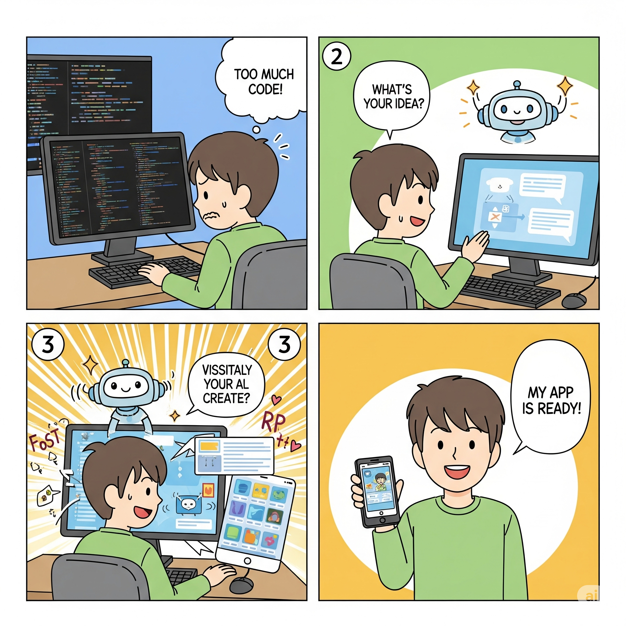 로버블은 AI 채팅 기능을 활용해서 웹사이트나 앱을 개발할 수 있는 아주 특별한 플랫폼이에요. 쉽게 말해, 복잡한 코딩을 몰라도 마치 친구랑 대화하듯이 AI에게 "나 이런 앱 만들고 싶어!"라고 이야기하면, AI가 알아서 척척 구현해주는 거죠. 노코드/로우코드 플랫폼이라 불리는데, 코딩 지식이 없어도 아이디어를 바로바로 현실로 만들 수 있어서 누구나 개발자가 될 수 있답니다. 어렵게 생각할 필요 없이, 여러분의 머릿속에 있는 반짝이는 아이디어를 로버블에서 쉽게 구체화하고 빠르게 프로젝트를 시작해보세요!