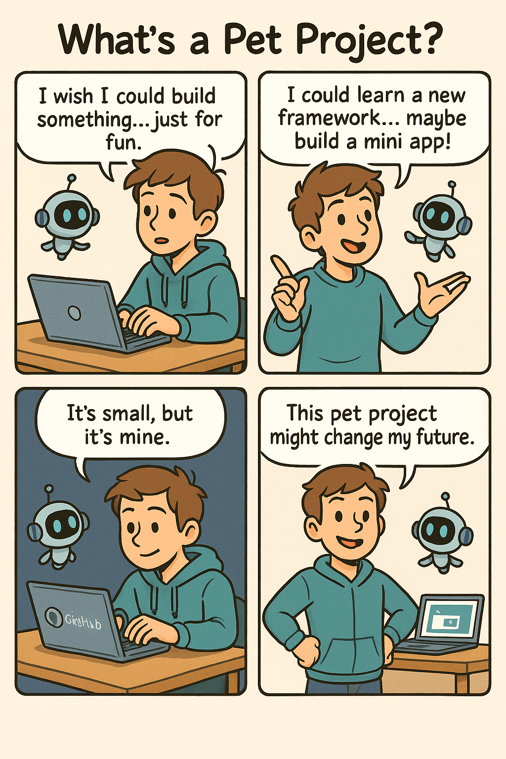 개발 일을 하다 보면 업무 외에도 해보고 싶은 게 참 많아져요. 새로운 기술도 궁금하고, 재미있는 아이디어도 떠오르고요. 이런 것들을 자유롭게 실험해볼 수 있는 게 바로 '팻 프로젝트(Pet Project)'예요. 이건 정규 업무와는 별개로, 개발자가 스스로 계획하고 진행하는 개인 혹은 소규모 프로젝트를 말하죠. 오늘은 팻 프로젝트가 왜 중요한지, 어떤 장점이 있는지, 그리고 어떻게 시작할 수 있는지에 대해 이야기해볼게요.