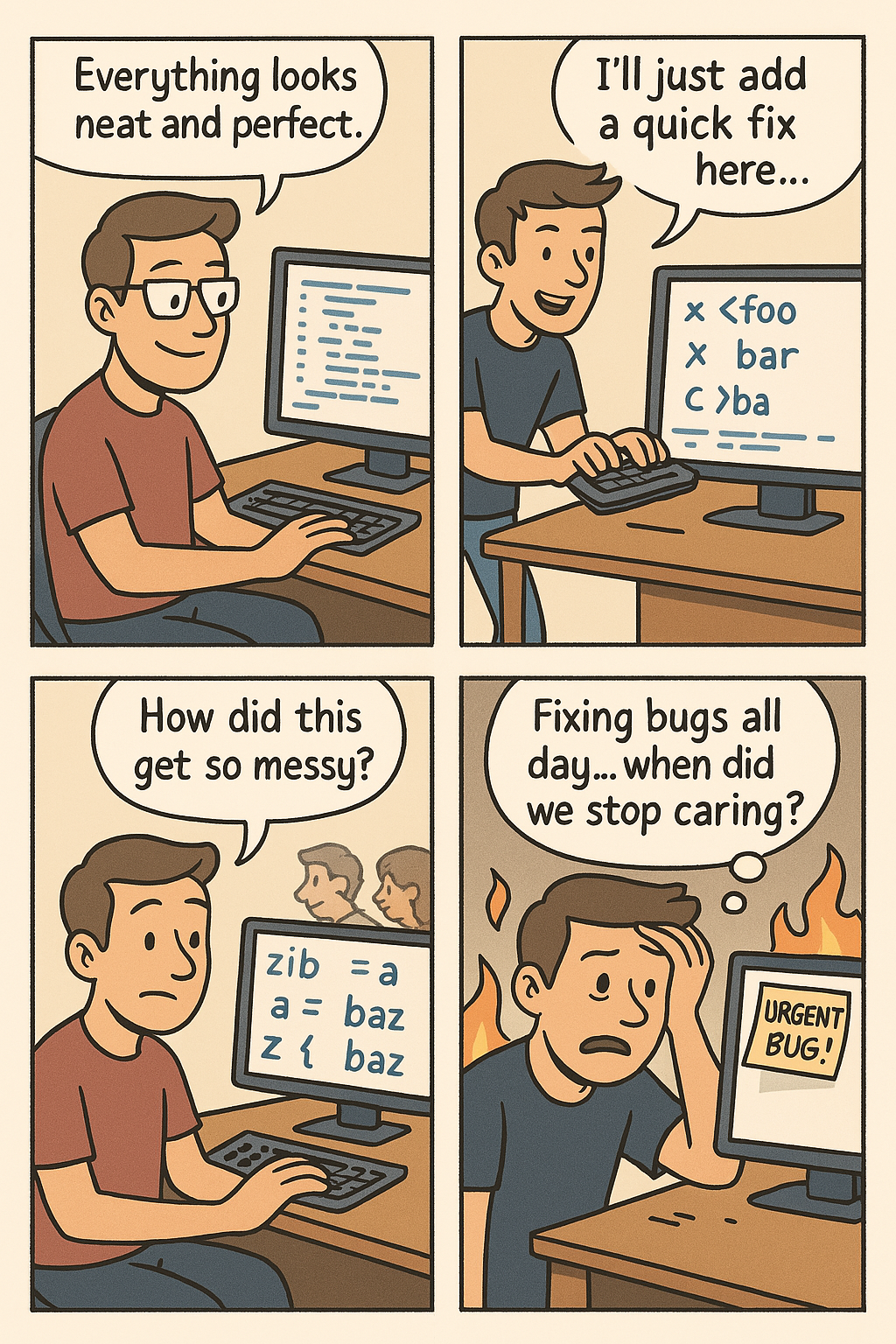 한마디로 말하면, '소프트웨어 엔트로피' 때문이에요. 엔트로피라는 건 원래 물리학 용어인데, 무질서도가 증가한다는 뜻이죠. 소프트웨어도 마찬가지예요. 처음엔 깨끗하게 잘 짜인 코드도, 여러 사람이 다루고 시간도 지나면서 점점 지저분해지기 마련이에요.