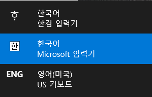 - Shift 키만 떼고 확인하면, 입력기 표시 창에서 [한국어 Microsoft 입력기]가 선택됩니다.